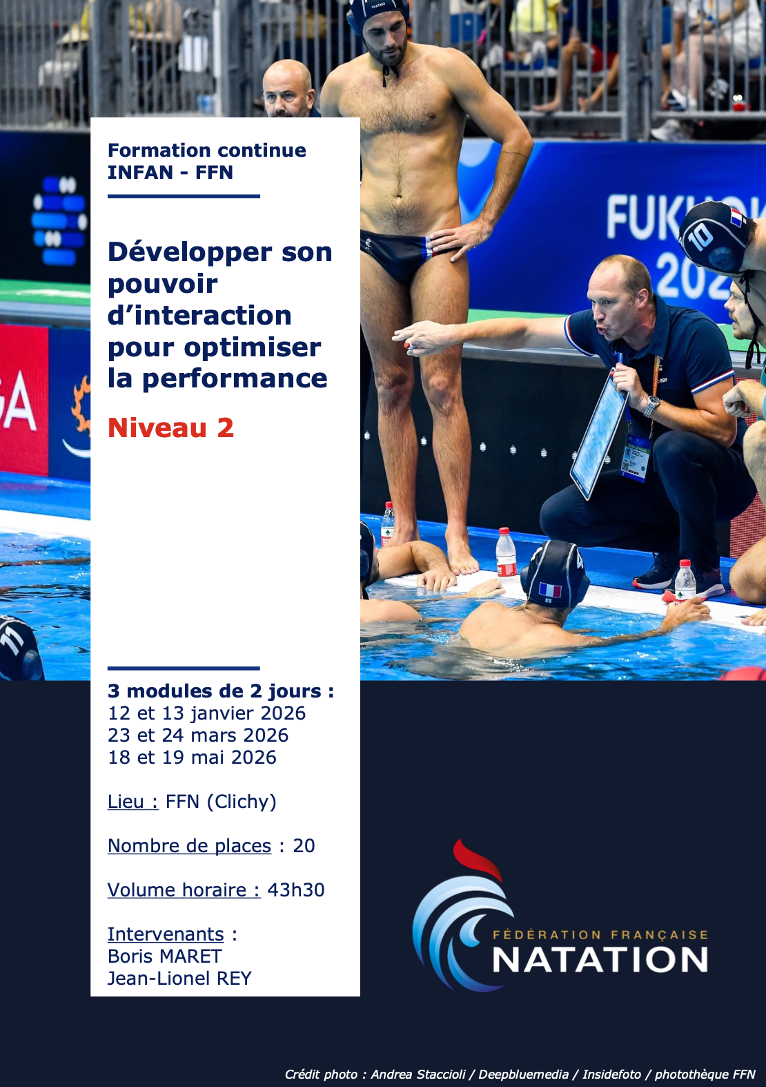 - Lieu : siège de la FFN à Clichy (92) - 100% formation en centre