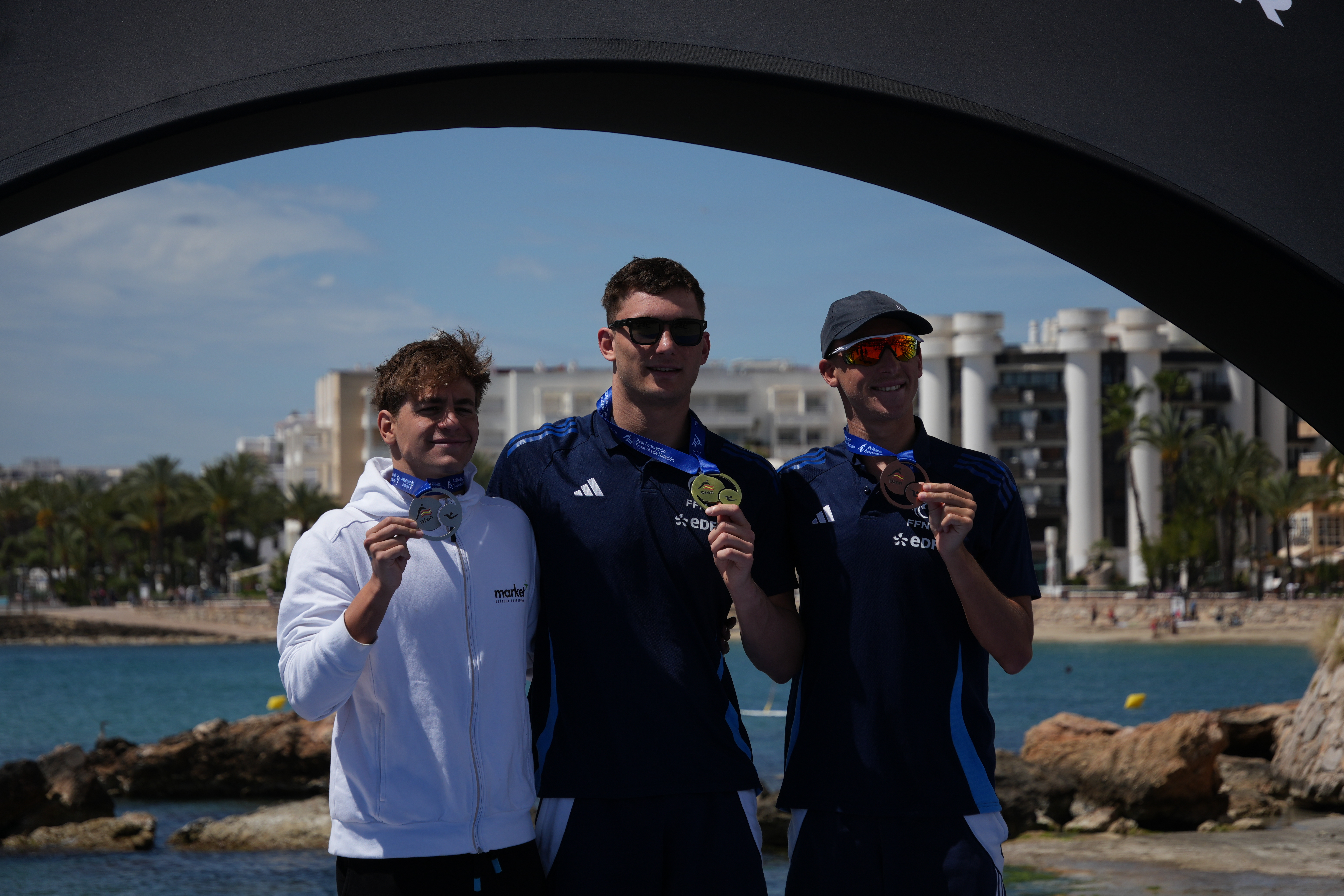 Voilà ce que l'on appelle une démonstration. Sacha Velly, deuxième du 10 km vendredi, a remporté, ce dimanche 26 avril, le 5 km des championnats d'Espagne. Plus fort et plus malin dans ses positionnements, le nageur de Laon a écœuré David Betlehem, double vainqueur ce week-end sur 10 km et 3 km Knockout, qui a lui devancé Marc-Antoine Olivier, pour la deuxième fois en bronze. Dans le coup pour la gagne avant un bonnet fuyant et des lunettes valsantes dans le dernier tour, Logan Fontaine a dû se contenter d'une nouvelle quatrième place.