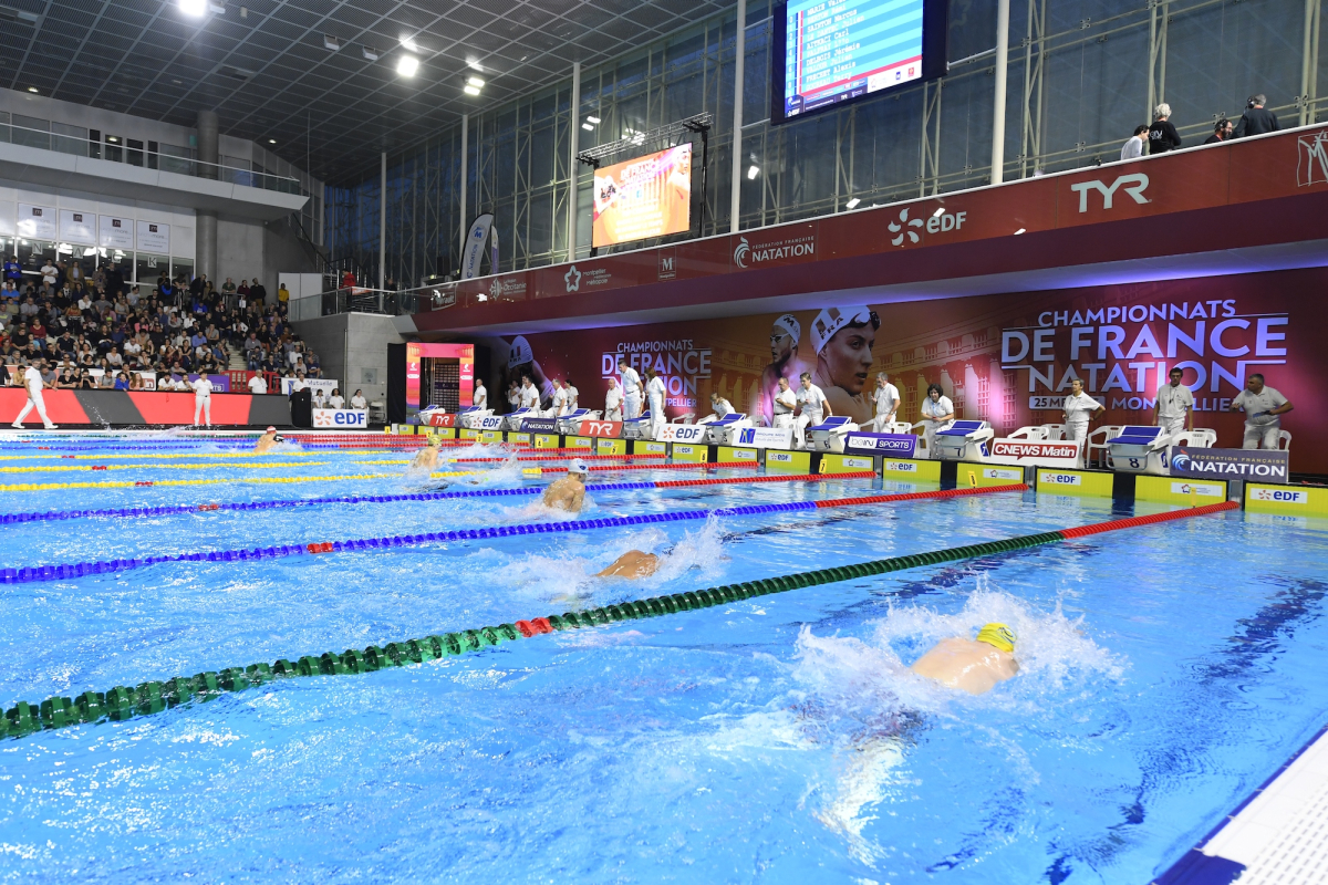 "Ils se répètent plus souvent forcément. La vitesse sous l’eau après avoir poussé sur le mur va être plus importante que la vitesse de nage. Après, sur un 100M, le nageur va en avoir 3 à gérer (au lieu d’un seul sur 100M grand bassin). Et donc être capable d’enchainer ses virages à très haute vitesse en moins d’une minute implique de les appréhender en anticipant l’arrivée sur le mur sans perdre de vitesse. La rotation doit être très rapide, et doit également créer la plus grande vitesse horizontale possible, tout en restant parfaitement aligné également. Pour donner une idée, par comparaison, dans sa coulée de départ, un bon nageur masculin va être à hauteur de 3,5M parcourus par seconde et dans les coulées après virage, autour de 2,5M par seconde, puis va ensuite nager à 2M par seconde. Cela concerne le 100M mais imaginez sur un 1500M petit bassin où il va, là, passer presque 30% de son temps en apnée."