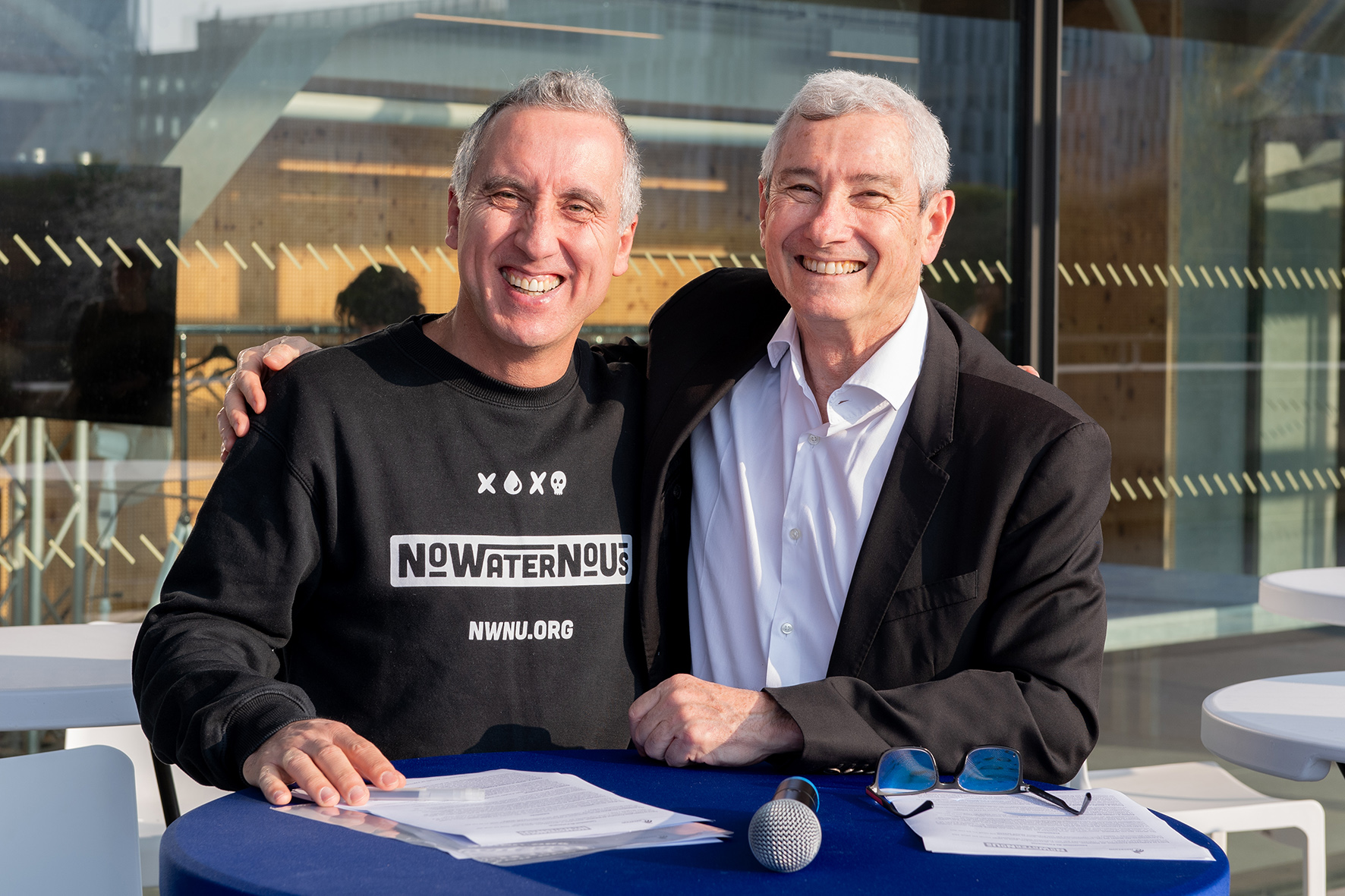 Gilles Sezionale, président de la Fédération Française de Natation, et Malek Semar, fondateur de l'association No Water No Us, ont profité du Giant Open, organisé au Centre Aquatique Olympique, pour signer une convention de partenariat, rappelant l’importance fondamentale de l’eau, cette ressource essentielle, au cœur de ses pratiques, de ses engagements et de ses responsabilités.