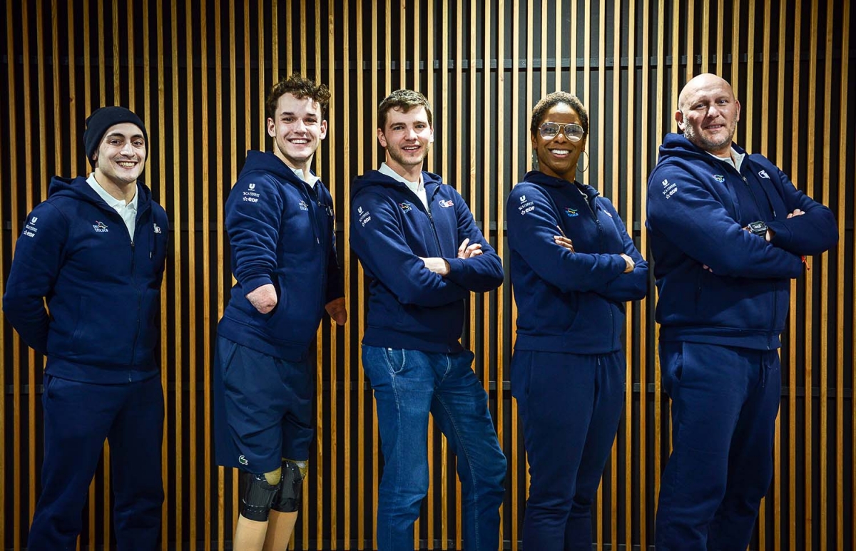 Bilal Bourazza (préparateur physique), Théo Curin, Matthieu Witvoet, Malia Metella et Stéphane Lecat (entraîneur du Défi Titicaca).