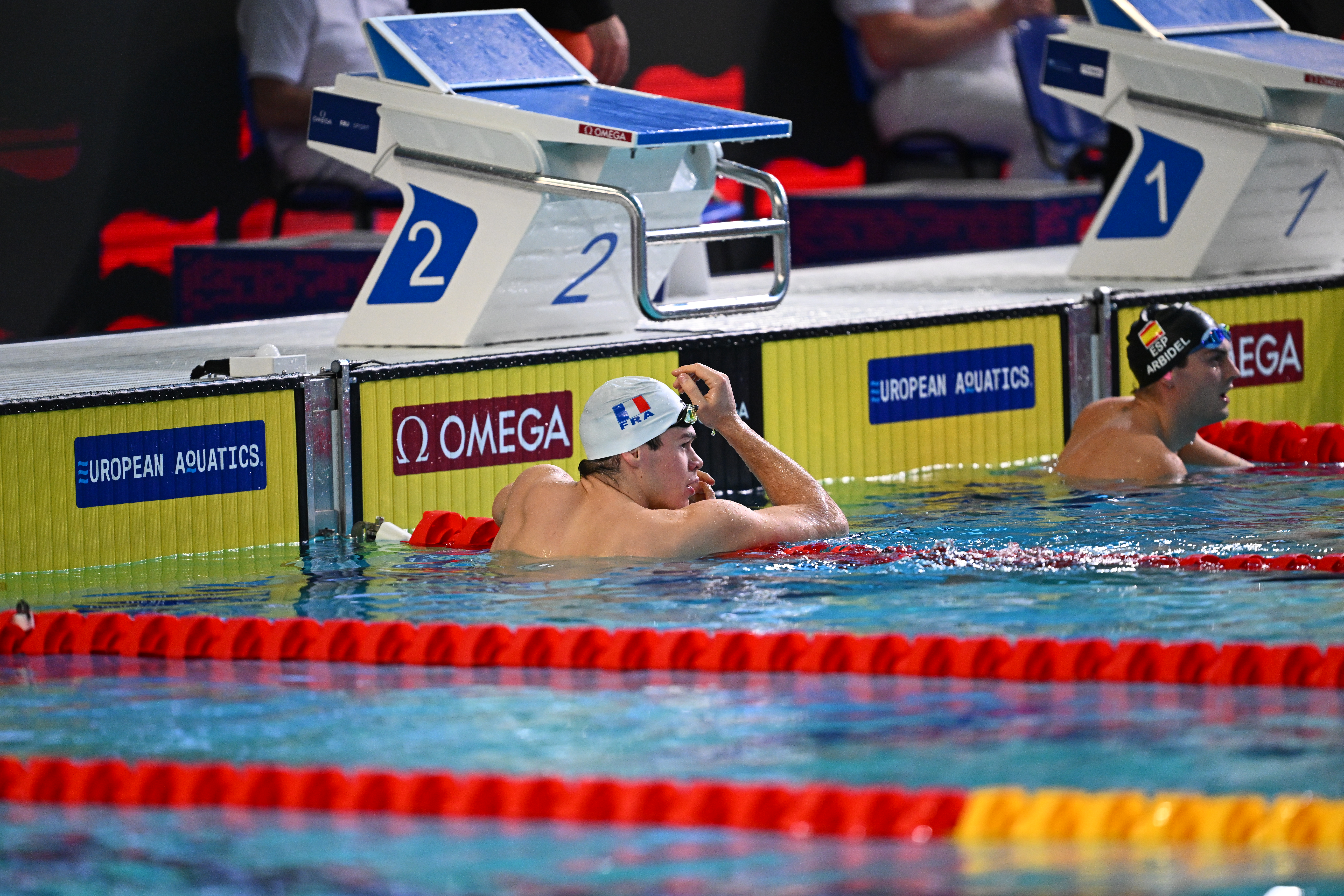 100%. C'est le taux de qualification des Français, jeudi 4 décembre, au matin du troisième jour de séries des championnats d'Europe de Lublin (Pologne). Avec Maxime Grousset et Clément Secchi sur 100 m papillon - Stanislas Huille a fait le temps, mais a terminé troisième Tricolore -, mais aussi Pauline Mahieu, Yohann Ndoye Brouard et Mewen Tomac sur 100 m dos, les Bleus ont fait carton plein dans l'Aqua Lublin toujours habillée d'un épais ciel gris indéboulonnable. Des nouvelles rassurantes pour tous, des maladies éloignées et des formes retrouvées qui promettent avant une soirée où tous joueront une place en finale, mais où Maxime Grousset et Béryl Gastaldello sur 100 m 4 nages, ainsi que Sacha Velly sur 1500 m nage libre, voudront augmenter le compteur de médailles de l'équipe de France. En attendant, découvrez les réactions des nageurs de la matinée.