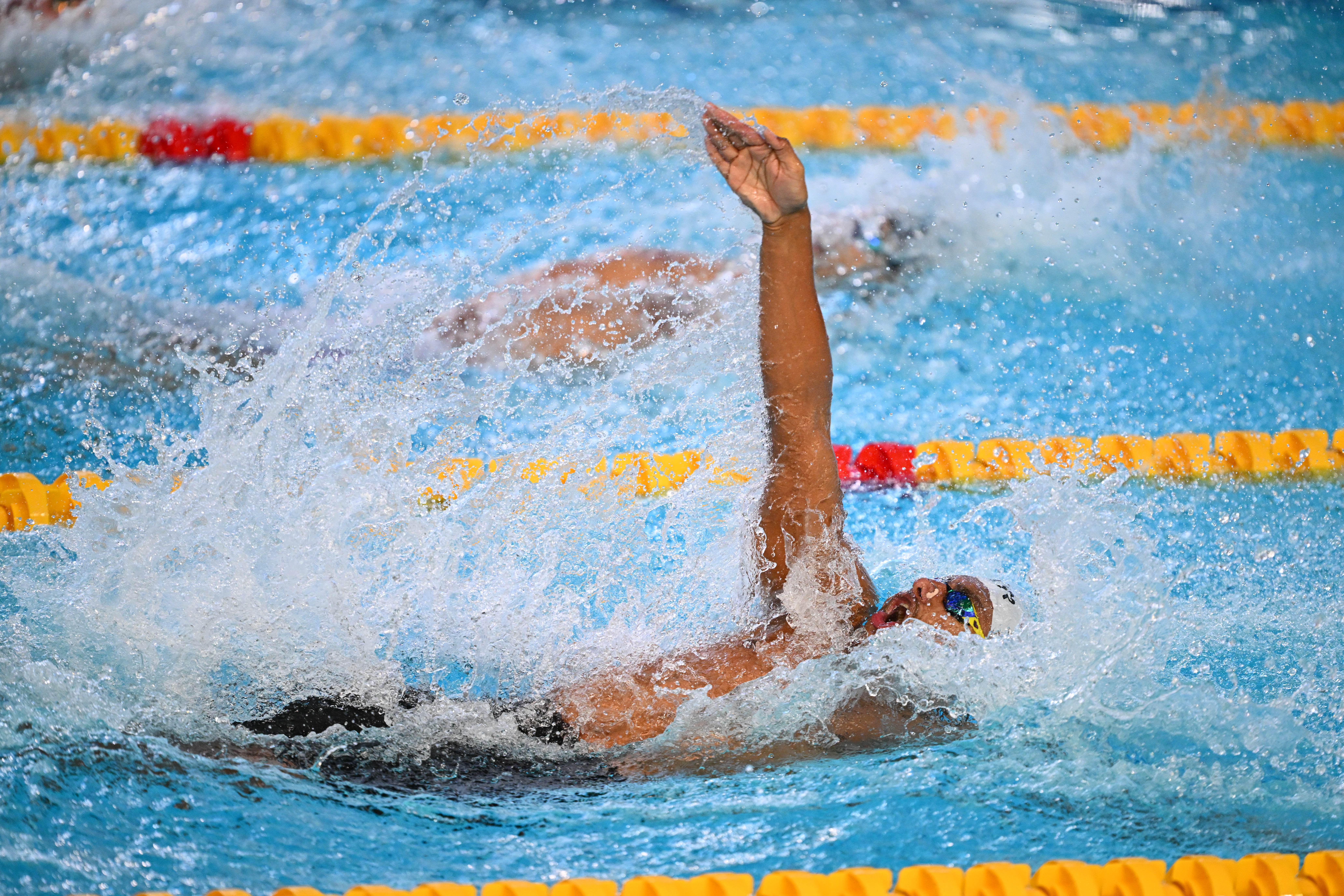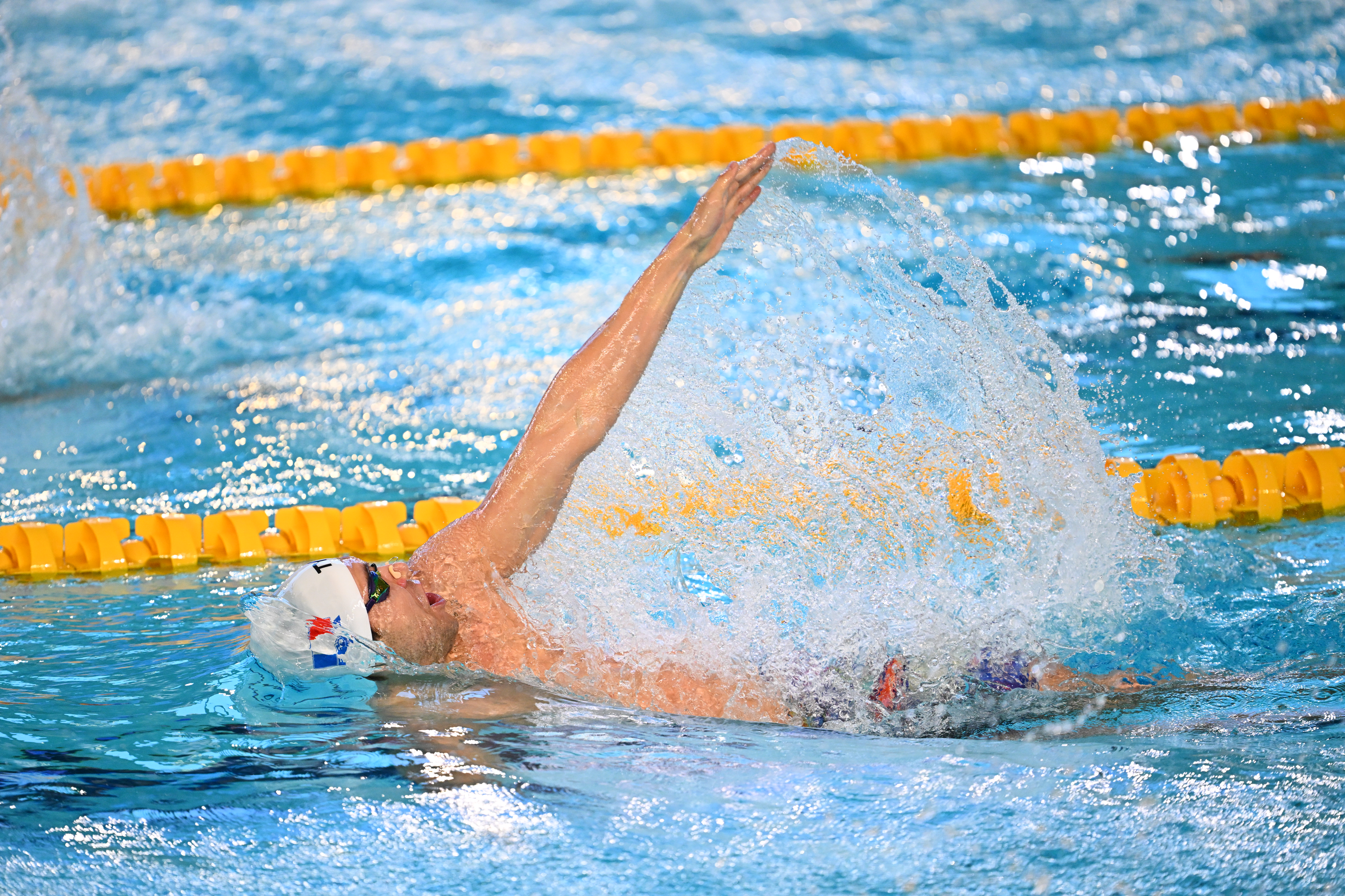 Mewen Tomac, qualifié en demi-finale du 100 m dos (8e temps en 50"70) :