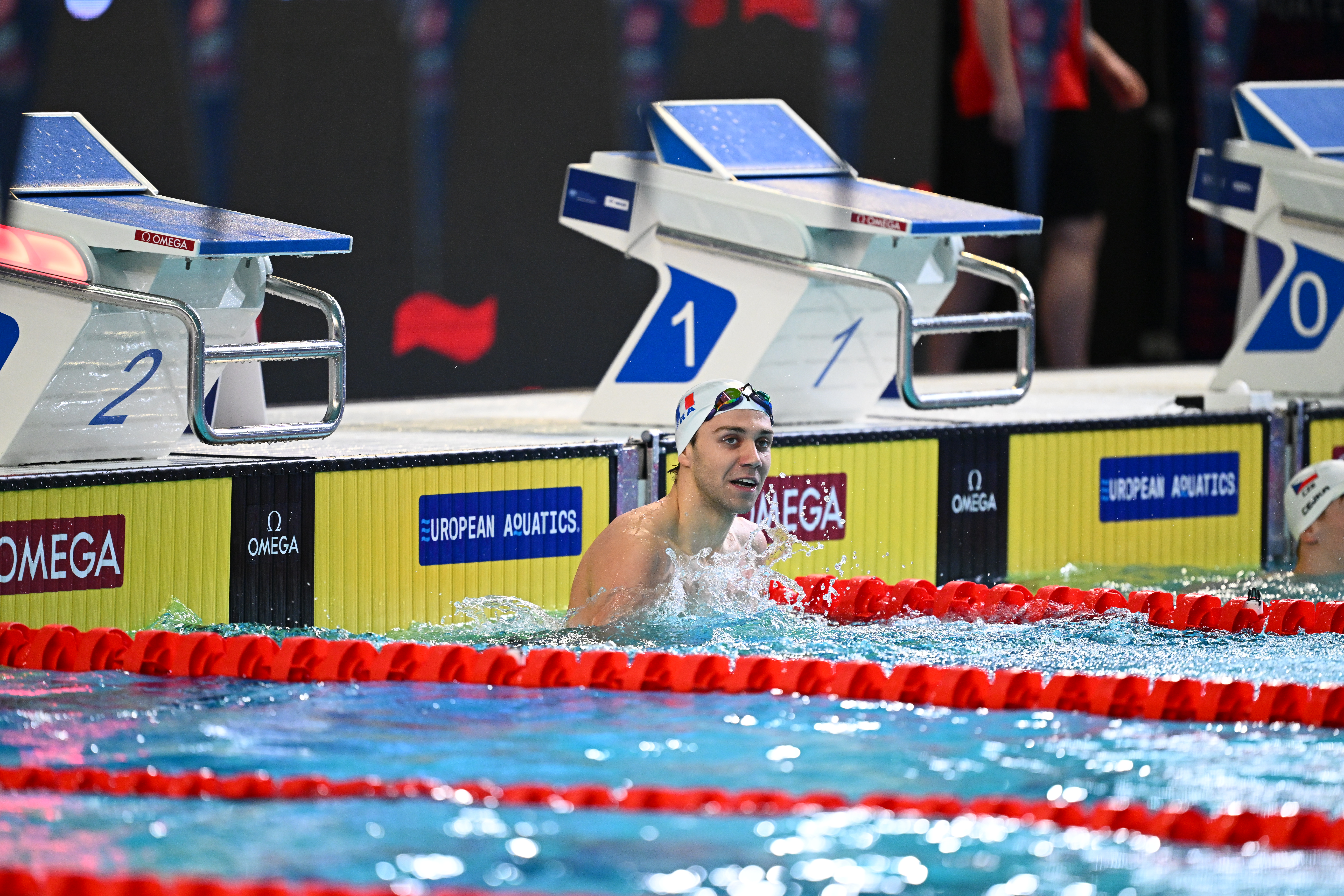 Maxime Grousset, champion d'Europe du 100 m papillon (48"10 CR, RF) et qualifié en finale du 100 m nage libre (meilleur temps en 45"65) :