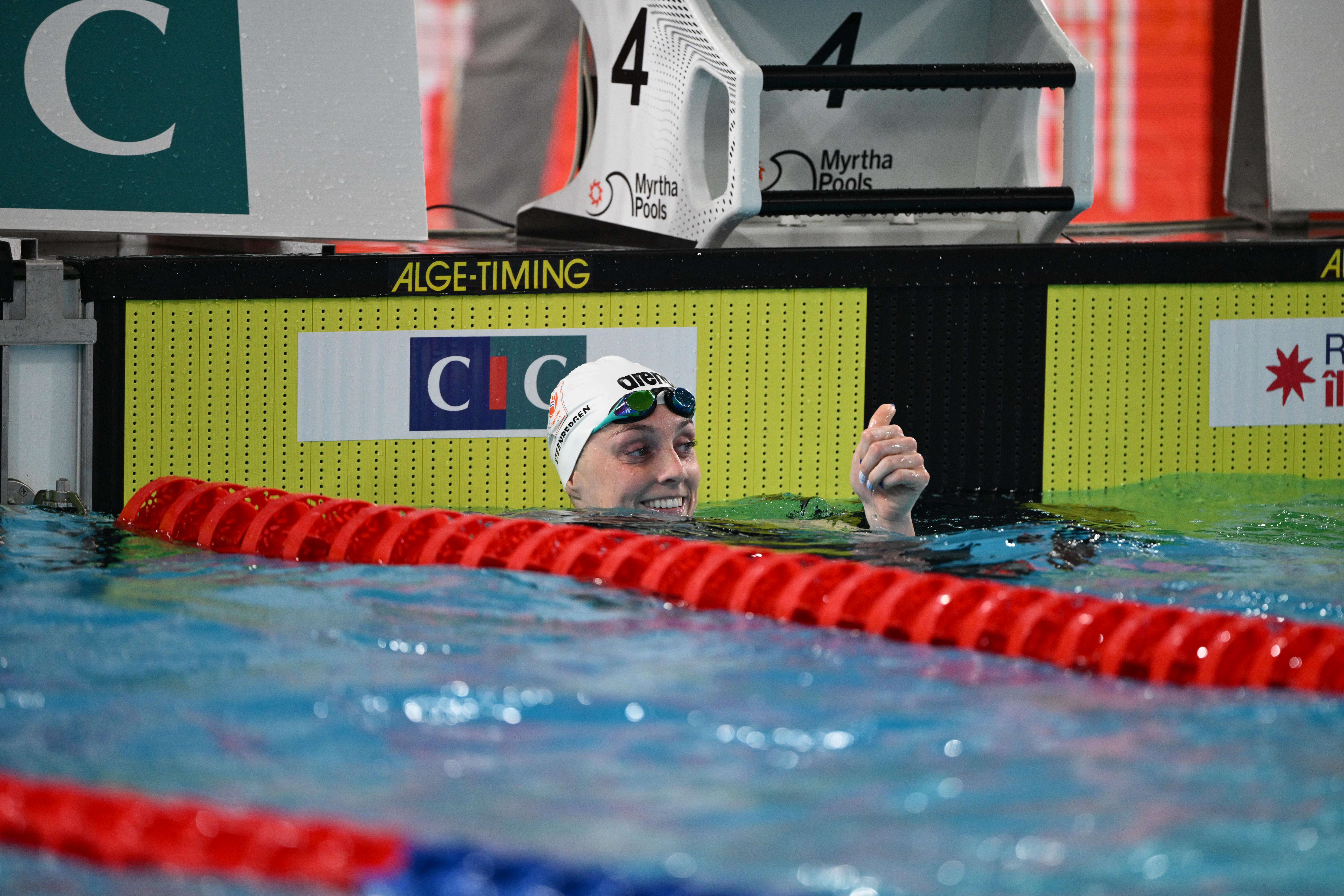 "J'aime beaucoup la piscine, c'est très cool de nager ici. J'ai de très bonnes sensations et je sors d'une grosse session d'entraînements, donc je n'ai pas beaucoup sprinté et être rapide à ce moment est très bien. Je voulais essayer cette piscine avant les championnats d'Europe et je suis très excitée à l'idée de revenir ici dans cette magnifique enceinte. Je pense que le 100 m papillon sera ma plus grande chance, mais être aussi rapide sur ce 50 m papillon à ce moment de la saison promet aussi. On verra ce que je peux faire demain sur mon épreuve."