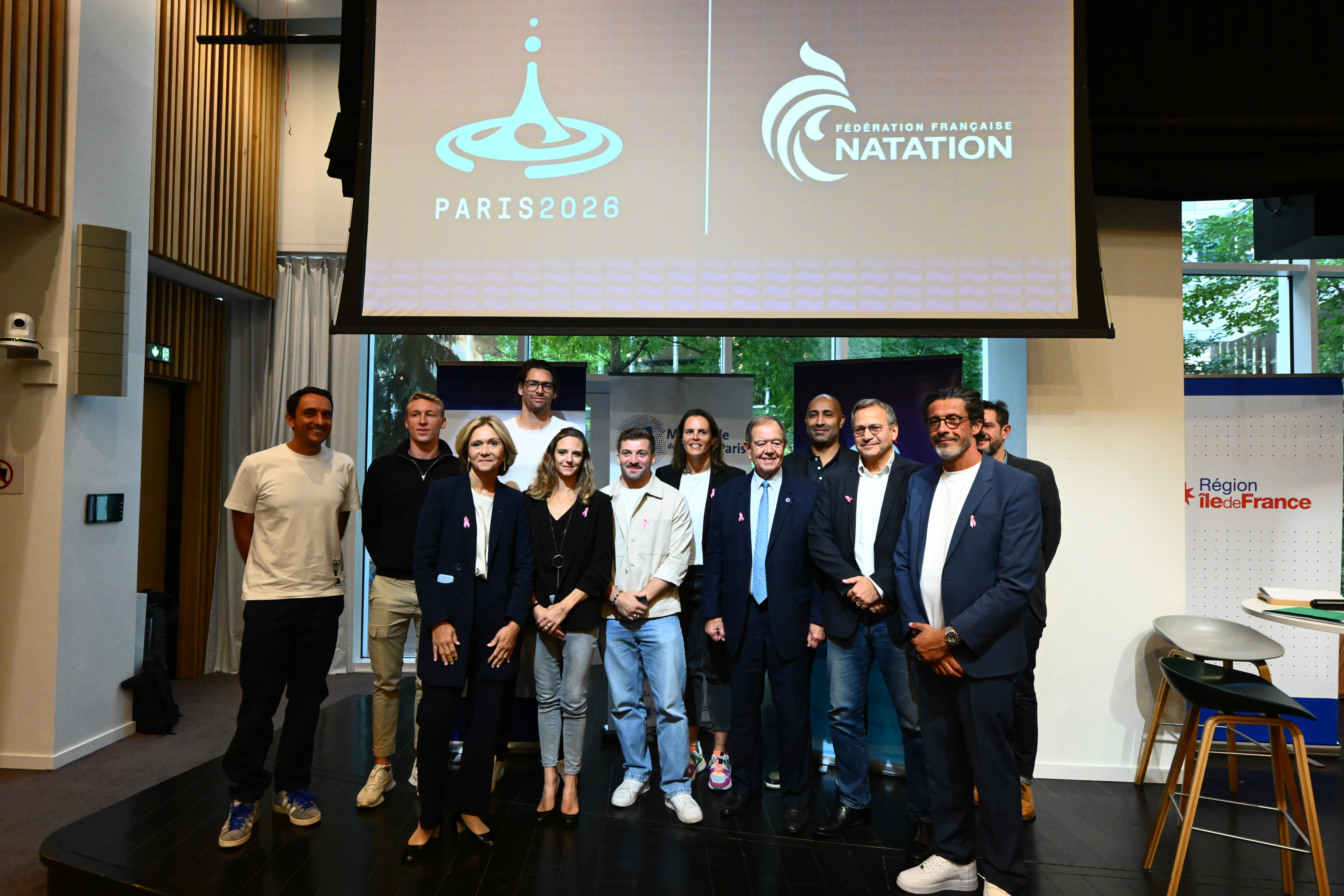 Du 31 juillet au 16 août 2026, Paris accueillera les championnats d'Europe de Natation. À 300 jours de cet événement, une conférence de presse s'est tenue au siège de la Région Ile-de-France en présence des institutions concernées (la Région, la Métropole, la Seine-Saint-Denis, la FFN) et des cinq ambassadeurs de l'événement : Camille Lacourt, Laure Manaudou, Virginie Dedieu, Alexis Jandard et Marc-Antoine Olivier. L'occasion de découvrir le clip de promotion de l'événement réalisé par l'agence Willie Beamen avec la voix-off de la journaliste Olivia Leray, ainsi que le logo de la compétition.
